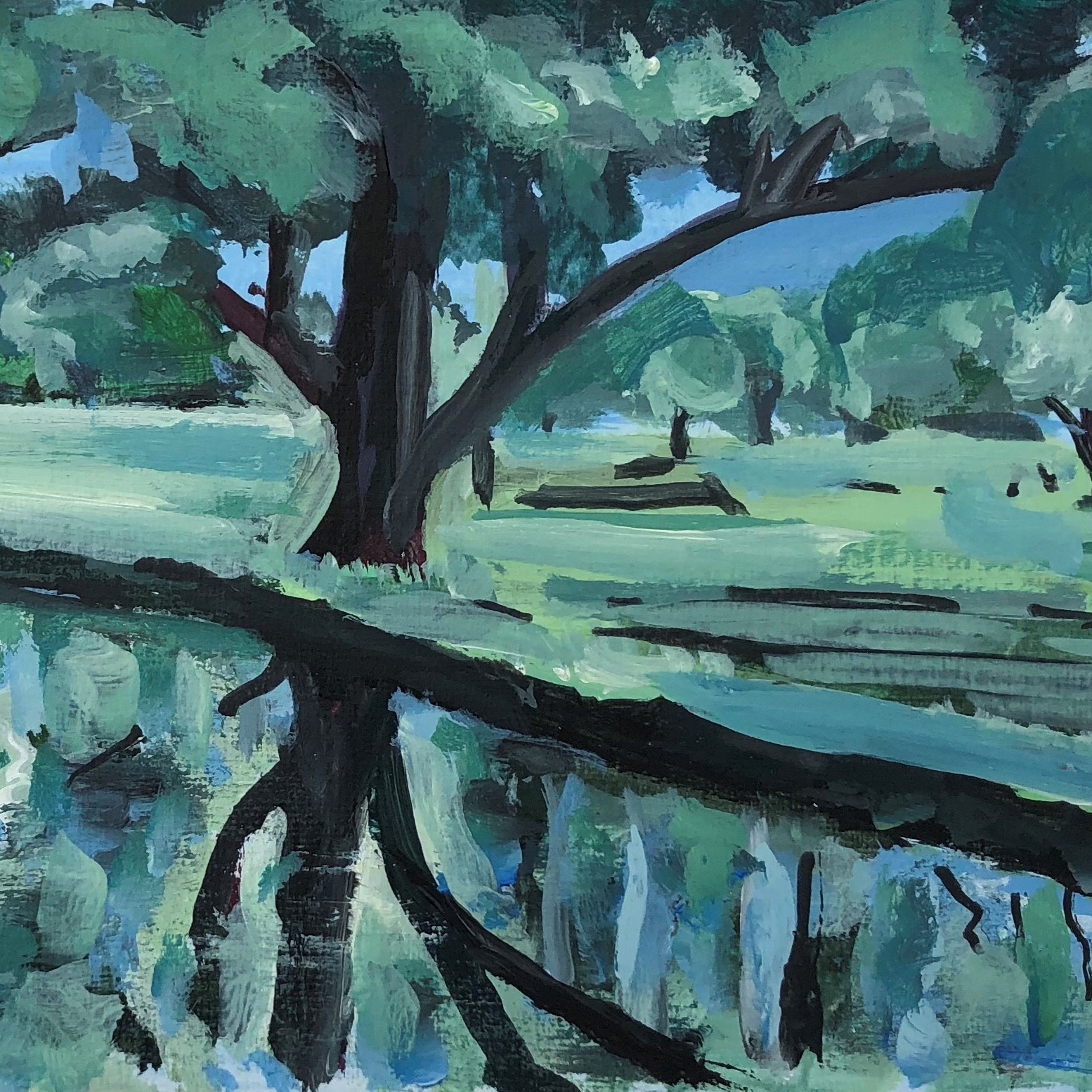 Jo Holdsworth is generously donating ‘Reflections at Morden Hall Park’, a stunning framed original painting by the award-winning London artist.